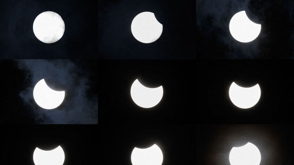 ನಾಂಟೆಸ್ನಲ್ಲಿ ಕಂಡುಬಂದ ಸೂರ್ಯಗ್ರಹಣದ ಮೋಡಿಮಾಡುವ ನೋಟ, ಈ ಚಿತ್ರದಲ್ಲಿ ಚಂದ್ರನಿಂದ ಭಾಗಶಃ ಮುಚ್ಚಲ್ಪಟ್ಟ ಸೂರ್ಯನ ವಿವಿಧ ಹಂತಗಳ ನೋಟವಿದೆ. ಇದು ಅಪರೂಪದ ದೃಶ್ಯವಾಗಿದೆ.